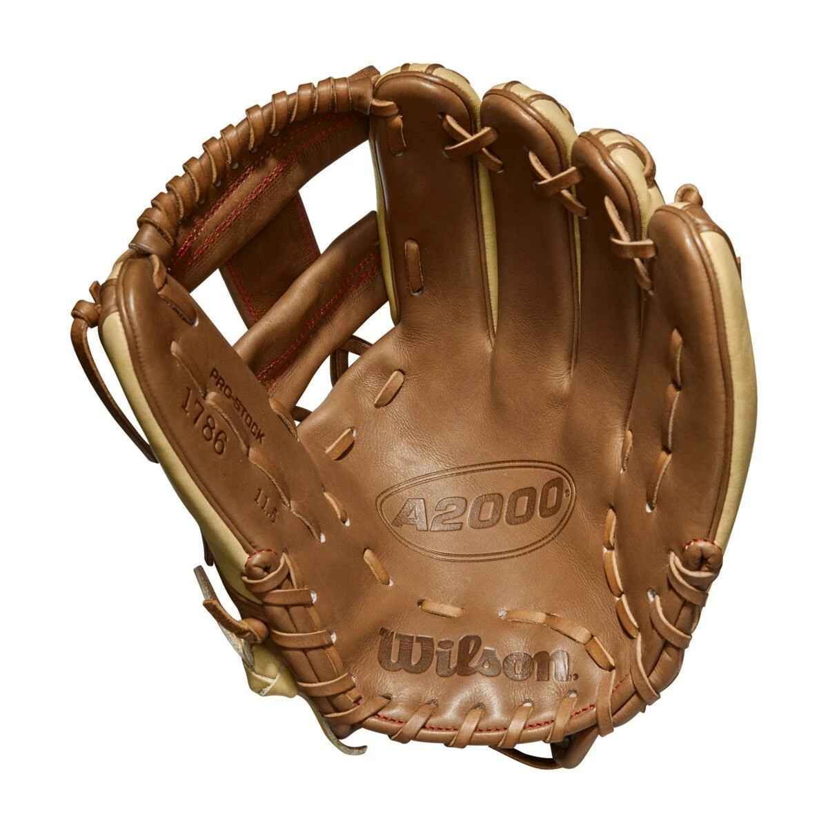 It’s a game-changing look for an iconic ball glove pattern. The 2022 A2000® 1786 features a shallow pocket design and classic H-Web that middle infielders prefer to secure the ball, make quick transfers and fire off throws to any base. Red Bold Logos on Blonde and Saddle Tan Pro Stock® leather bring the perfect amount of spark to a textbook glove design.