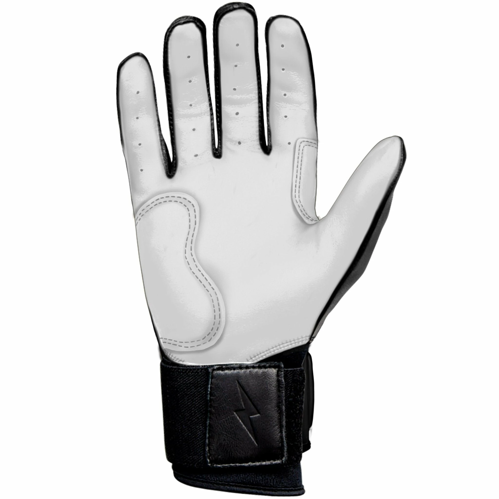 The Black Premium Pro Chrome Series Long Cuff is one of our favorite pairs of Bruce Bolt Gloves, the all white look gives those looking for a clean look a pair of the most durable batting gloves on the market. If you have the need for gloves that last, these are definitely a great option!