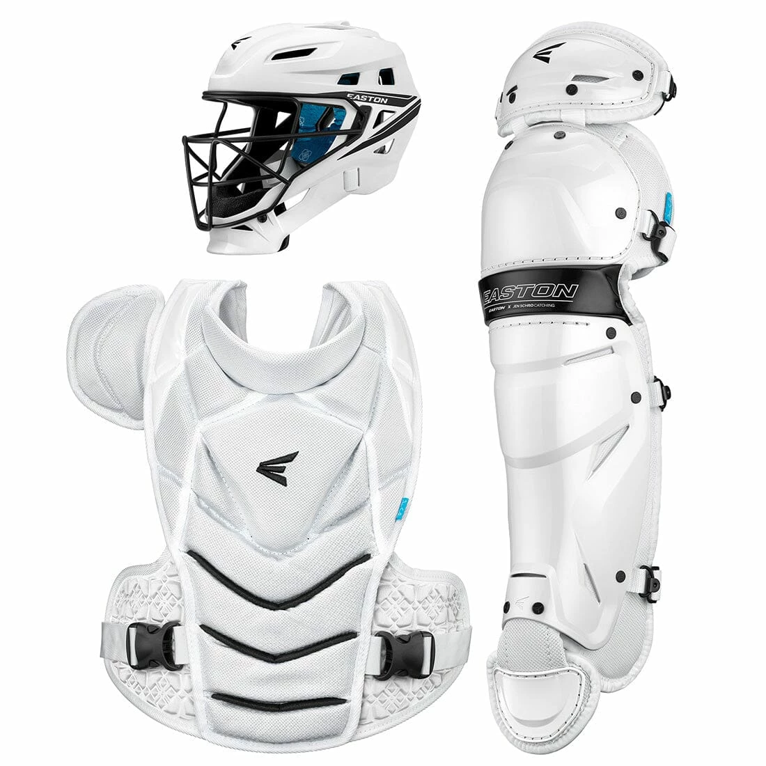 Every fastpitch catcher knows her job is the toughest on the field—and that’s exactly why she loves it. The Very Best™ Box Set from Easton x Jen Schro is revolutionary new gear made specifically to inspire and protect fastpitch catchers. The Very Best Catcher’s Helmet is engineered with new streamlined durable ABS plastic shell plus black matte steel cage as well as Clear Dri™ and Aegis™ Anti-Microbial lining. The Very Best Chest Protector is form fit for the female athlete, with easy to adjust fit system and patented silicone grip abs. The Very Best Leg Guards feature neoprene knee strap for improved comfort as well as inner knee padding designed for throwing from the knees.